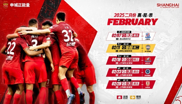 ?海港隊(duì)2月賽程?2025超級(jí)杯決賽?2024-2025賽季亞冠精英聯(lián)賽?2025華潤(rùn)飲料中超聯(lián)賽全新賽季,全力以赴 標(biāo)簽: 足球 中超 中國(guó)足球 上海海港 轉(zhuǎn)載