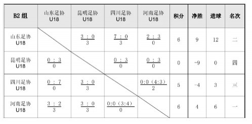 小組賽最后一輪,由于對手昆明足協(xié)U18隊(duì)棄權(quán),河南隊(duì)?wèi){借對陣山東的勝負(fù)關(guān)系優(yōu)勢,力壓對手以小組頭名的成績進(jìn)入到了接下來的排位賽。