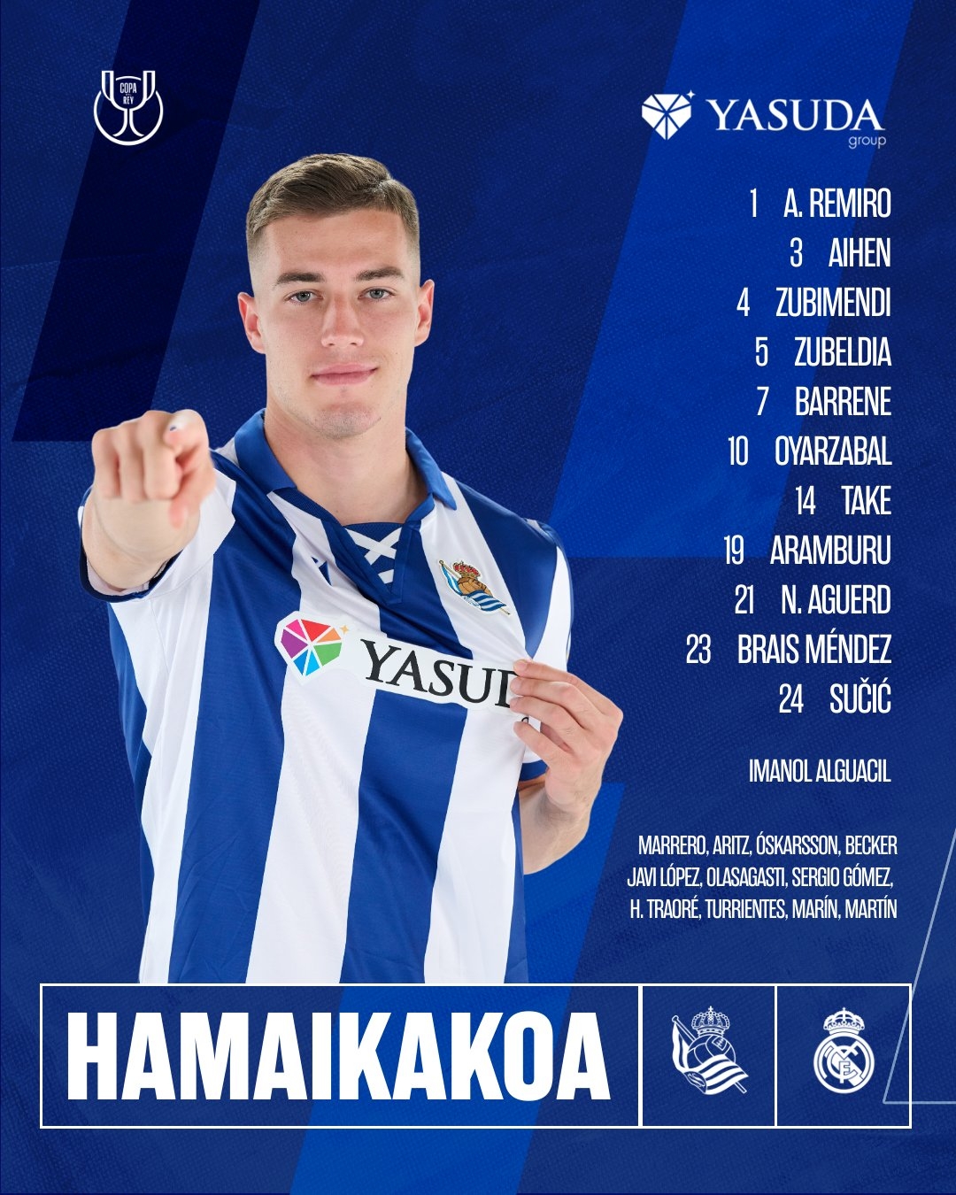 皇家社會(huì)替補(bǔ):13-馬雷羅、6-埃盧斯通多、9-奧斯卡松、11-貝克、12-哈維-洛佩斯、16-奧拉薩加斯蒂、17-塞爾吉奧-戈麥斯、18-哈馬里-特拉奧雷、22-特倫特斯、28-巴勃羅-馬林、36-喬恩-馬丁