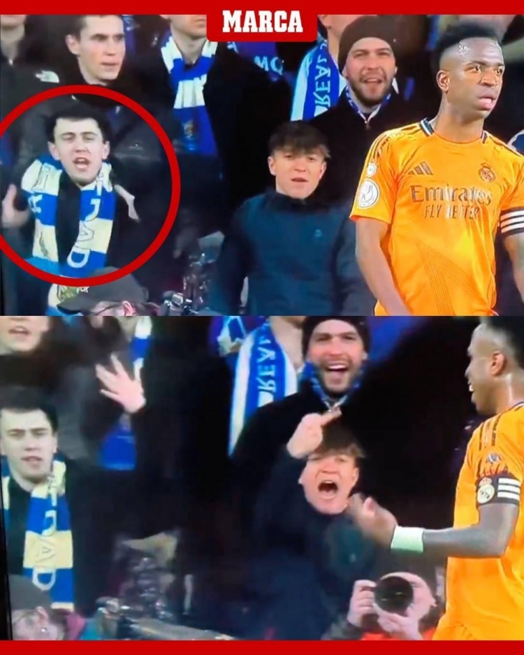 2月27日訊 今天凌晨國王杯半決賽首回合,皇家社會0-1皇馬。根據(jù)《馬卡報》報道,電視轉播鏡頭抓拍到本場比賽期間,一位皇家社會球迷種族歧視維尼修斯,對后者做出了猴子的手勢。 標簽: 足球 西甲 皇家馬德里 皇家社會