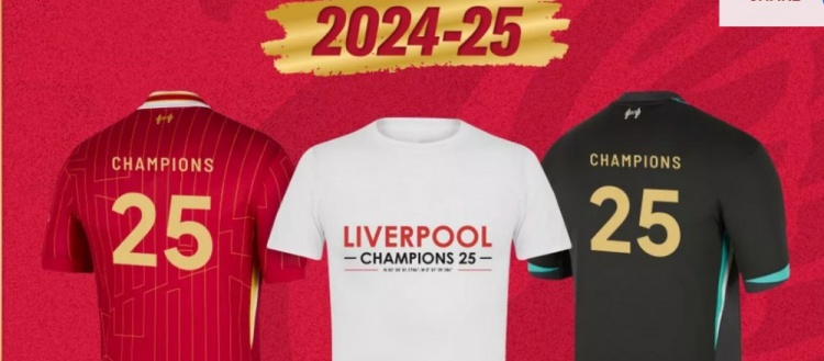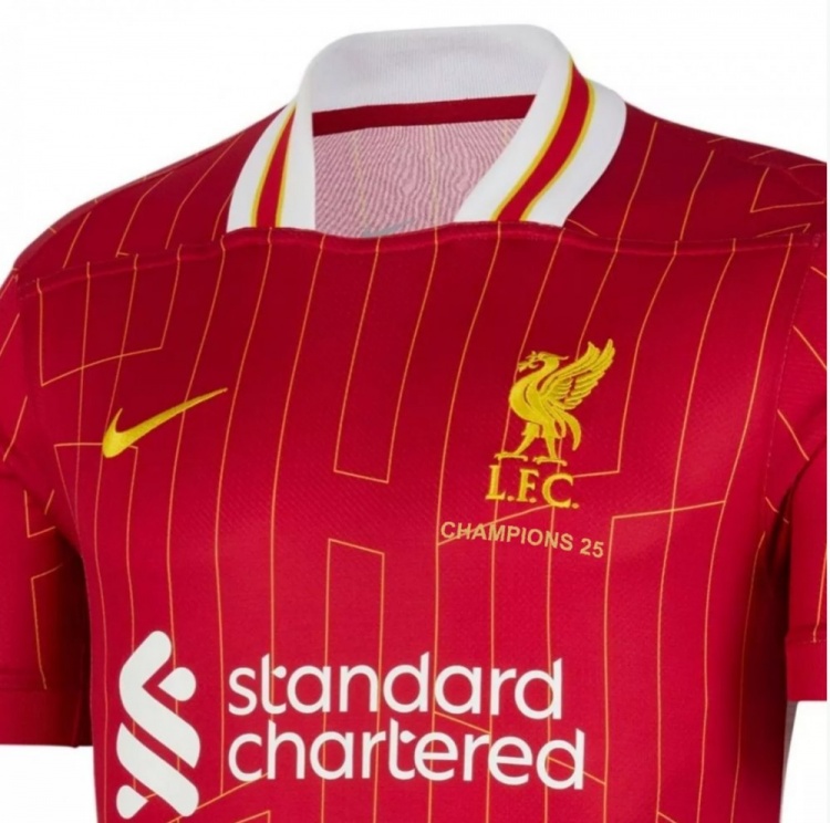 這款t恤成人版售價(jià)9.99英鎊,青少年版售價(jià)7.99英鎊,現(xiàn)在已經(jīng)可以購(gòu)買了。利物浦球迷還可以訂購(gòu)印有“25”字樣的球衣復(fù)制品。它的背面有冠軍和25字樣,而俱樂部的logo周圍也繡著“冠軍 25”字樣。