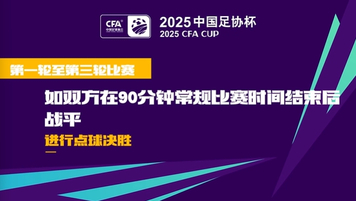 2025中國(guó)足協(xié)杯正賽將于3月14日開(kāi)賽,12月5日結(jié)束,一共進(jìn)行7輪,為主客場(chǎng)單敗淘汰賽制,共64支參賽隊(duì),進(jìn)行63場(chǎng)比賽,第1輪至第3輪若在90分鐘內(nèi)戰(zhàn)平將直接進(jìn)行點(diǎn)球大戰(zhàn),決賽將于12月5日在蘇州奧體中心進(jìn)行。