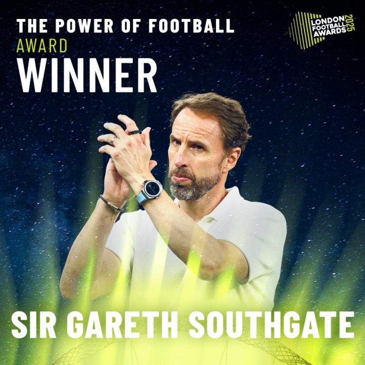 2月28日訊 倫敦足球獎官方宣布,索斯蓋特獲得足球力量獎。