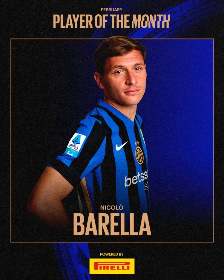 2月28日訊 國(guó)米官方宣布,巴雷拉當(dāng)選2月隊(duì)內(nèi)最佳球員。