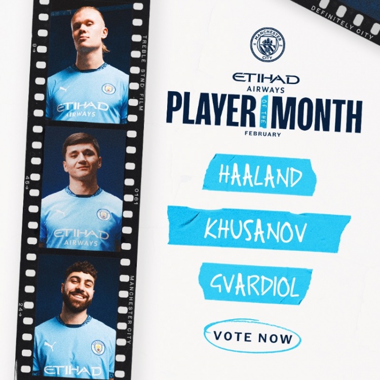 2月28日訊 曼城官方公布了2月隊內(nèi)最佳球員的候選名單,分別是哈蘭德、胡桑諾夫和格瓦迪奧爾。