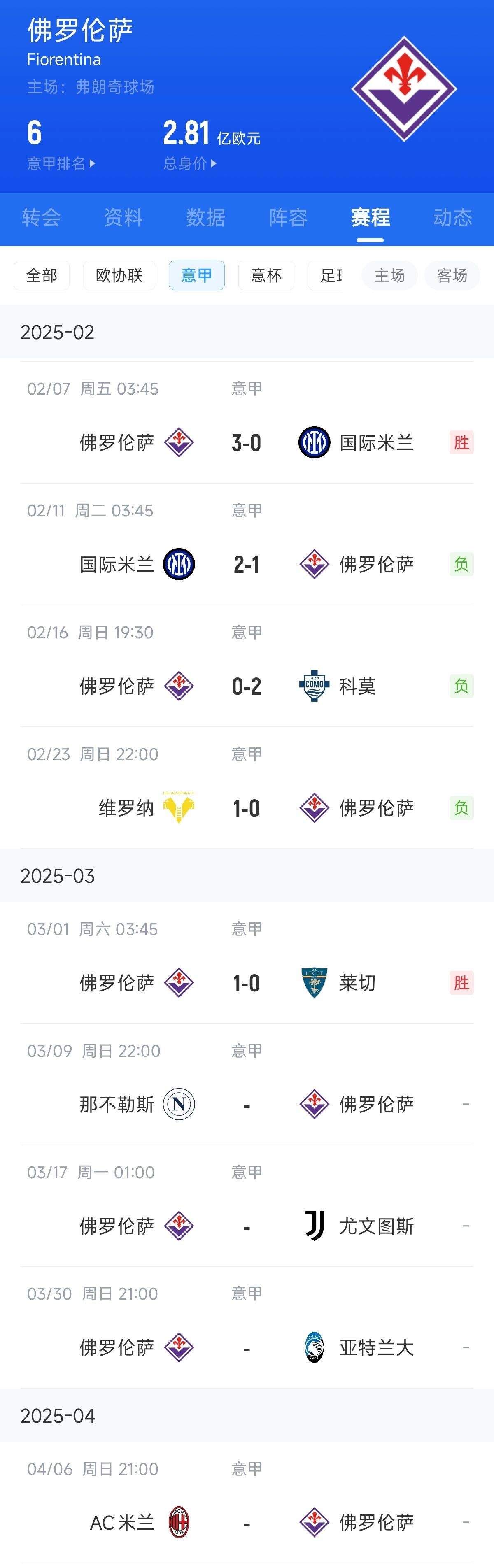 此前佛羅倫薩曾在補(bǔ)賽3-0擊敗目前的意甲頭名國米,接下來的比賽,佛羅倫薩與2/3/4名的對(duì)陣結(jié)果極為關(guān)鍵,堪稱冠軍判官。