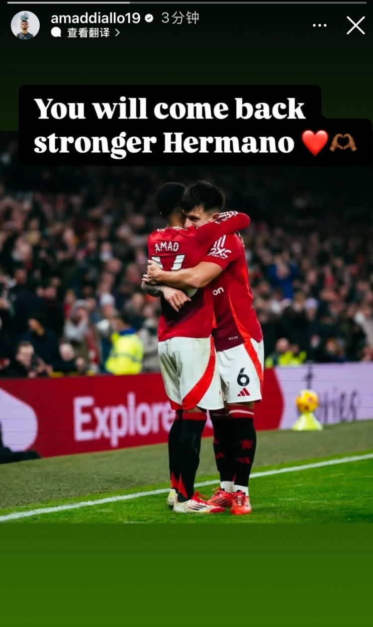 2月4日訊 多家媒體報道,曼聯(lián)中衛(wèi)利馬遭遇十字韌帶撕裂重傷,預計傷缺六個月時間。阿瑪?shù)赂律缑?,向利馬送上安慰。