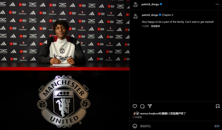多古寫道:生涯第二章,非常開(kāi)心加入曼聯(lián)大家庭,迫不及待要開(kāi)始比賽了!