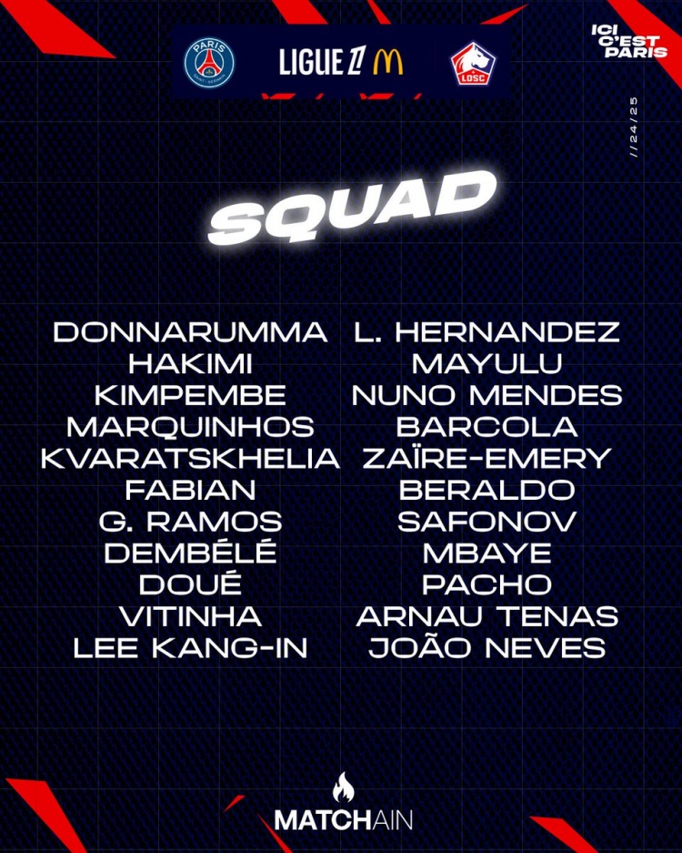 前鋒:克瓦拉茨赫利亞、貢薩洛-拉莫斯、登貝萊、杜埃、巴爾科拉、姆巴耶