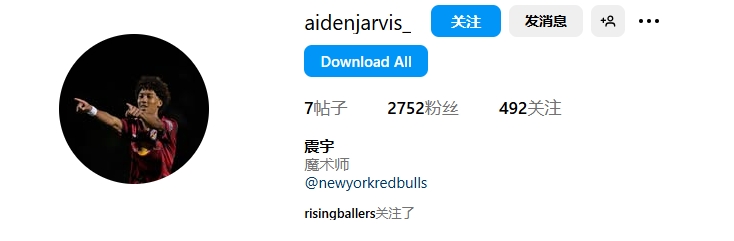 值得注意的是,賈維斯在簽約時身披中國國旗,證明他的華裔身份和認(rèn)同,他的社媒名字也特地寫了個中文名“震宇”。
