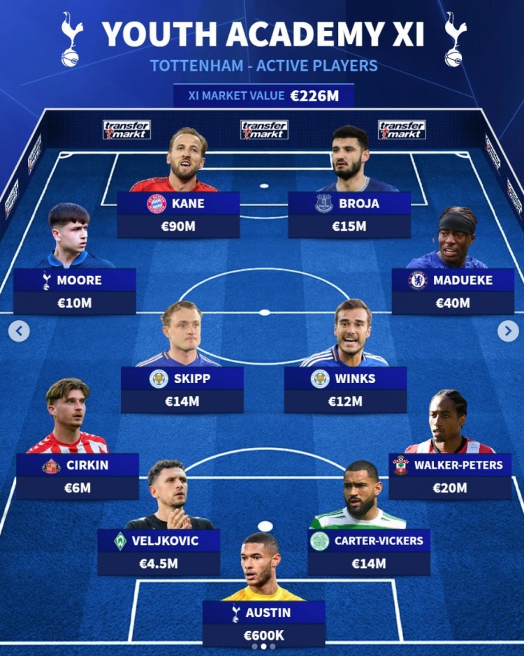 熱刺青訓(xùn)當(dāng)前身價最貴陣:總身價2.26億歐元
