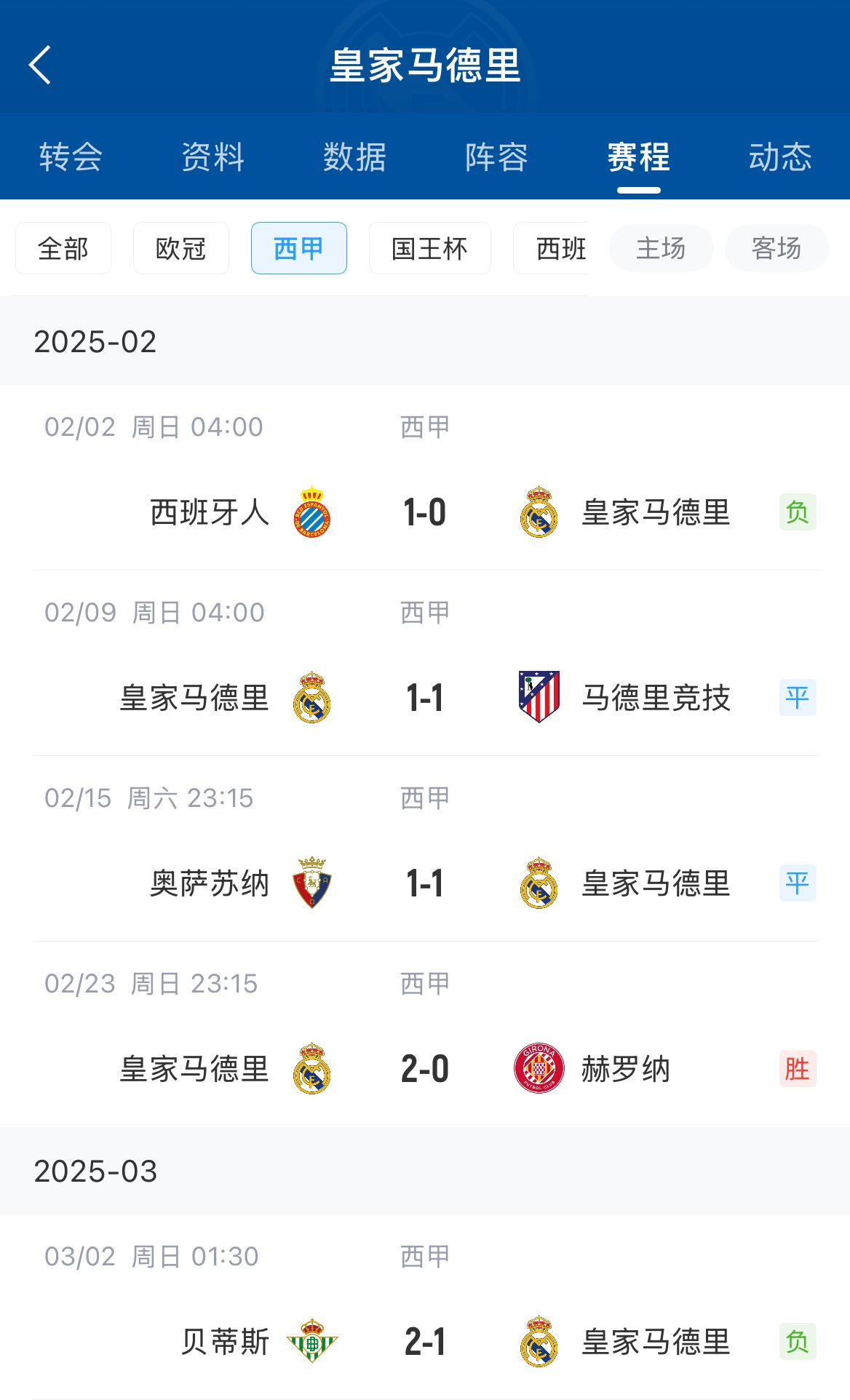 5輪僅1勝!皇馬西甲奪冠概率腰斬跌至三強墊底,兩周前還51%領(lǐng)跑