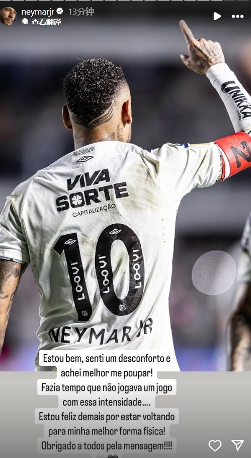 我已經(jīng)有一段時間沒有踢那么激烈的比賽了,我很高興正恢復(fù)到自己最好的身體狀態(tài)過程中,感謝大家的留言!”