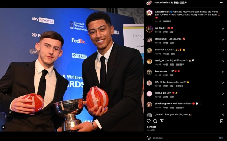 3月4日訊 官方消息,桑德蘭中場喬貝-貝林厄姆以及克里斯-里格獲英格蘭東北地區(qū)足球作家協(xié)會評選的年度最佳年輕球員獎。