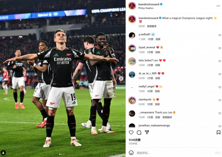 本場比賽特羅薩德首發(fā)出戰(zhàn)并取得進(jìn)球,賽后他也在個(gè)人社媒曬出慶祝進(jìn)球照片,配文寫道:“多么神奇的歐冠之夜!”