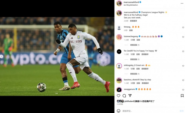 3月5日訊 在本輪歐冠,維拉3-1擊敗布魯日占得先機。本場比賽拉什福德首發(fā)登場,賽后他也在個人社媒曬出本場照片,配文寫道:“歐冠之夜!我們距離晉級還有一半路程,下周我們再見!” 標(biāo)簽: 足球 英超 阿斯頓維拉