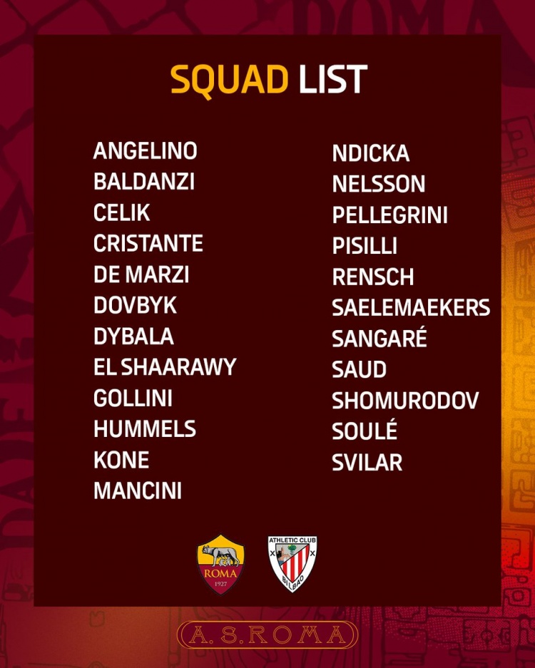 3月5日訊 北京時(shí)間3月7日凌晨4時(shí),歐聯(lián)杯1/8決賽首回合羅馬主場(chǎng)對(duì)陣畢爾巴鄂競(jìng)技,羅馬公布此役大名單,迪巴拉、佩萊格里尼、胡梅爾斯等球員在列。