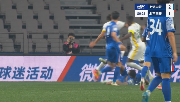 【判例一】:中超聯(lián)賽第2輪,上海申花VS北京國安,比賽第89分鐘,北京國安9號隊員在對方罰球區(qū)內(nèi)與上海申花32號隊員爭搶球后倒地,裁判員未判罰犯規(guī),VAR未介入。