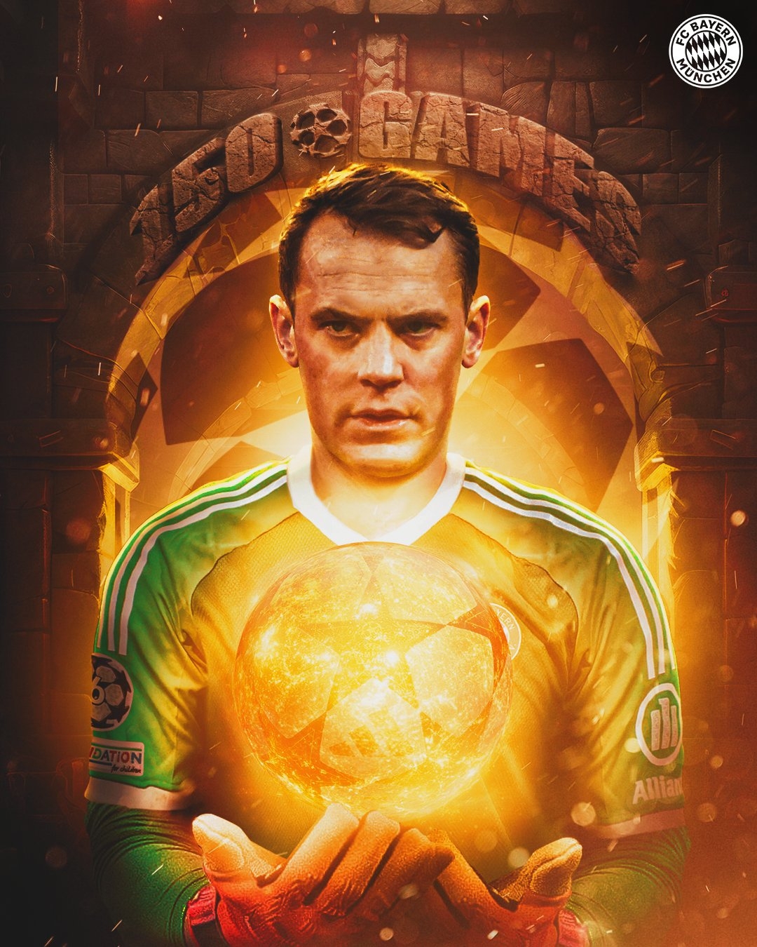 本場比賽也是諾伊爾歐冠第150次出場里程碑之戰(zhàn),拜仁官方也曬出海報為其紀念。