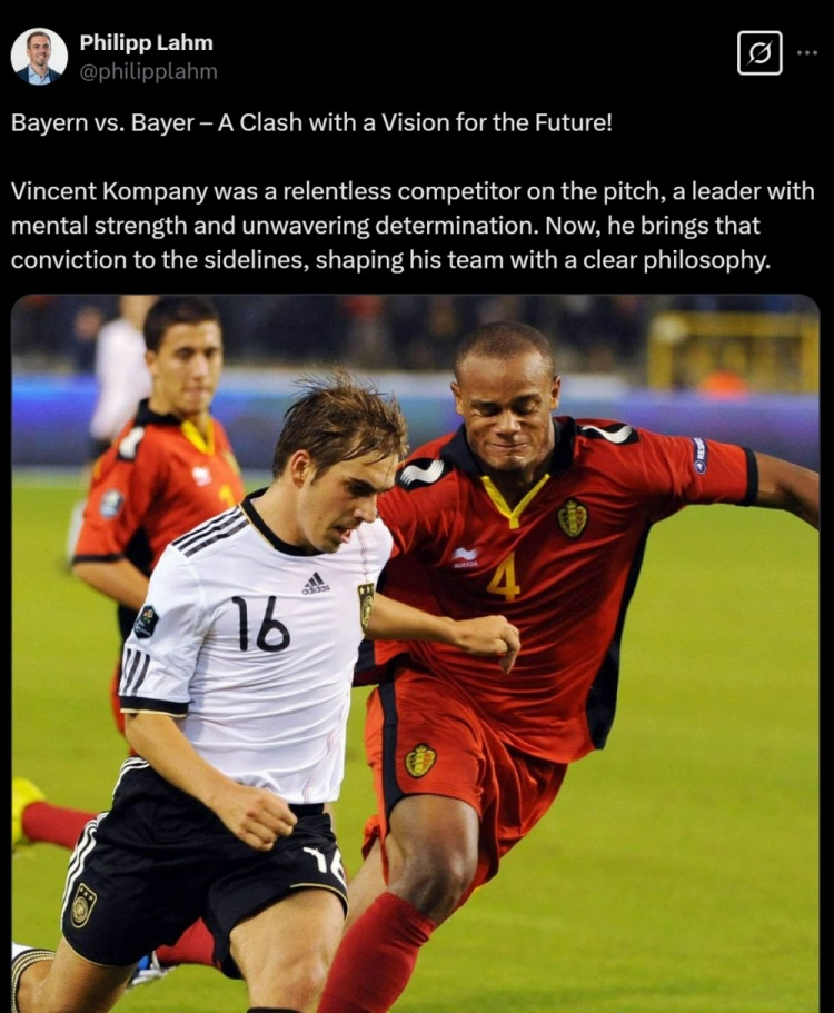 拉姆寫道:拜仁對陣勒沃庫森,這是一場未來愿景之間的較量!在球場上,孔帕尼是一位不屈不撓的斗士,一位擁有強大精神力量和堅定決心的領袖?,F(xiàn)在,他將這種信念帶到了教練席,正在用清晰的理念塑造他的球隊。