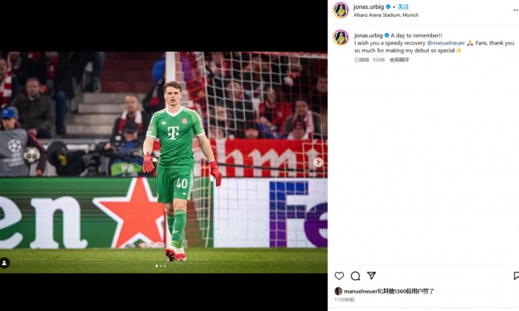 烏爾比希:“值得銘記的一天!我希望諾伊爾早日康復(fù),感謝球迷們讓我的首秀如此特別。”