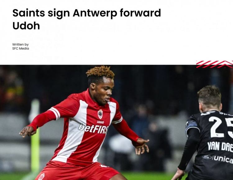 2月4日訊 南安普頓官方宣布,俱樂部已經(jīng)簽下了安特衛(wèi)普的20歲左邊鋒烏多,雙方簽約三年半。