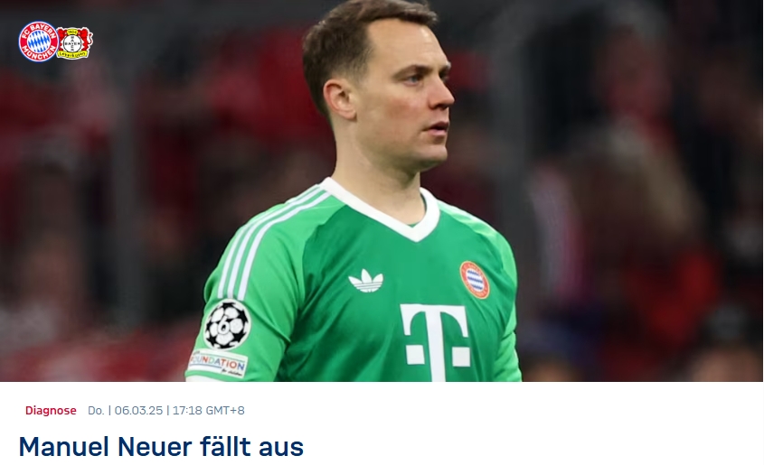 03月06日訊 拜仁官方消息,諾伊爾右小腿肌肉纖維撕裂,將暫時(shí)缺陣。