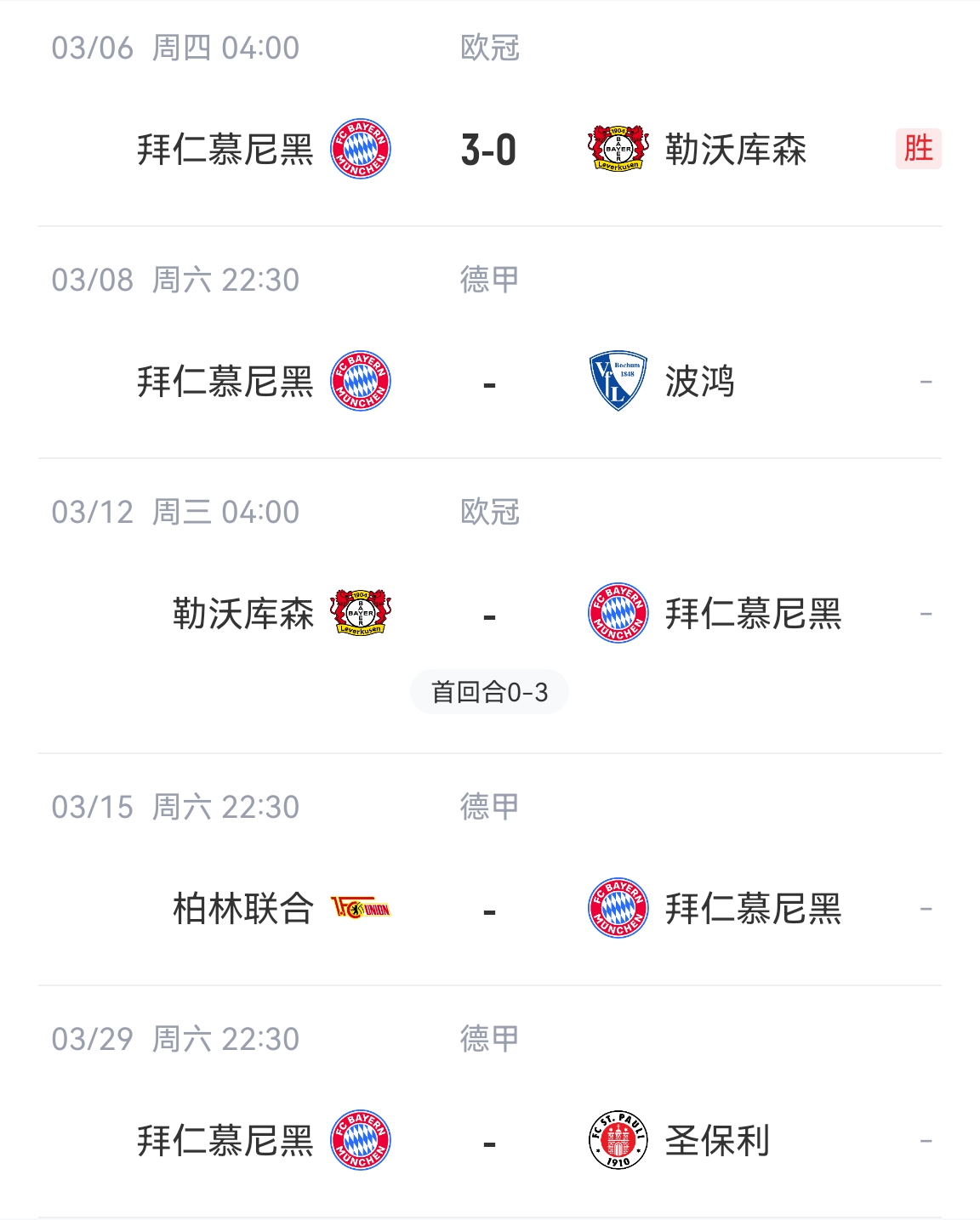 拜仁后續(xù)賽程↓