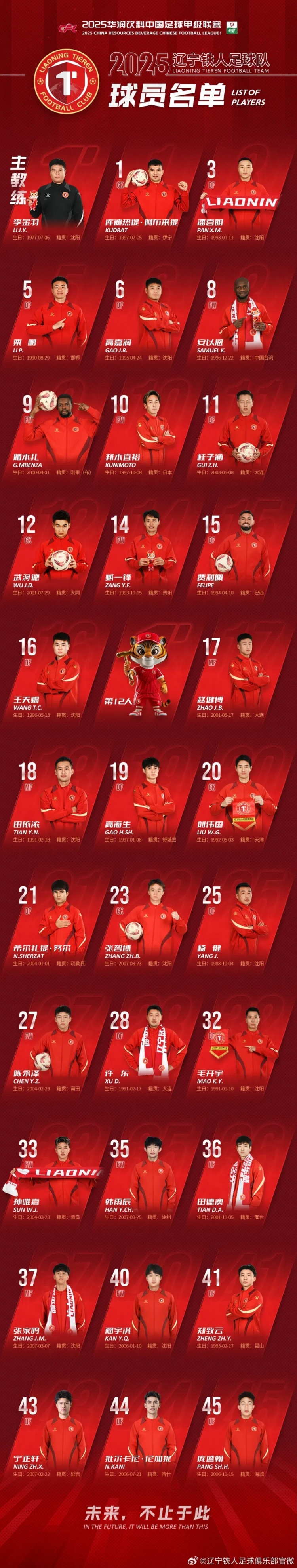 3月6日訊 今天,遼寧鐵人俱樂部公布了新賽季一線隊(duì)球員名單,冬季轉(zhuǎn)會期引進(jìn)的兩名華裔球員方愛東、伍小海并未進(jìn)入名單。