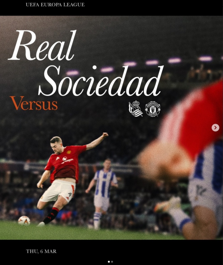 曼聯(lián)發(fā)布為此役制作的海報,德里赫特出鏡,曼聯(lián)社媒配文:“歐聯(lián)杯淘汰賽現(xiàn)在開始。”