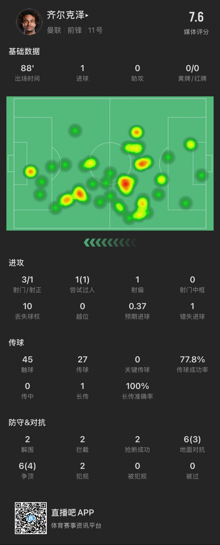 齊爾克澤本場(chǎng)主要數(shù)據(jù)↓