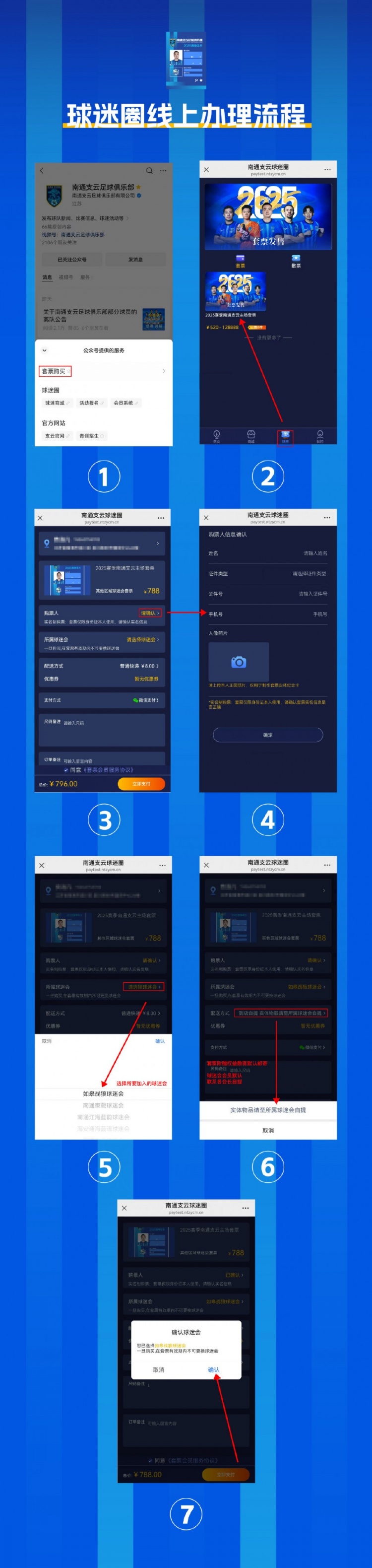 2、實名制要求:2025賽季南通支云足球俱樂部主場套票采用強制實名制銷售,購票人提供的個人信息要求務(wù)必真實準(zhǔn)確,請在購買時再次確認(rèn)實名制信息的正確性(名字+身份證號碼必須和身份證上的保持一致), 以免影響入場觀賽;