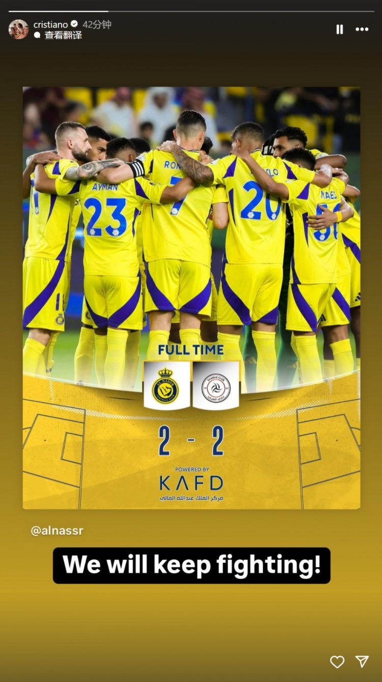 沙特聯(lián)第24輪利雅得勝利主場2-2戰(zhàn)平利雅得青年人,本場比賽C羅破門攻入生涯第926球。賽后,C羅在個人社交媒體少出全隊擁抱的照片,寫道:我們會繼續(xù)戰(zhàn)斗! 標簽: 足球 利雅得勝利 C羅