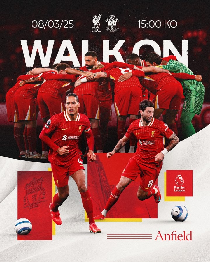 3月8日訊 今晚11點(diǎn),利物浦將在英超主場迎戰(zhàn)南安普頓,紅軍在官推曬出海報,為比賽預(yù)熱。