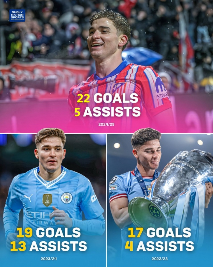 2024年10月7日,馬德里競技做客挑戰(zhàn)皇家社會(huì),阿爾瓦雷斯開場50秒便完成閃擊破門,此役成為其西甲生涯的分水嶺。在賽季初的10場比賽中,阿爾瓦雷斯只有2球入賬,鋪天蓋地的“水貨”罵名幾乎淹沒了他的社交媒體賬號。以造訪阿諾埃塔為起點(diǎn),小蜘蛛開啟了一輪31場20球的收割之旅,馬競以一波12連勝進(jìn)入西甲爭冠集團(tuán),老東家曼城卻在同時(shí)期輸?shù)?4場比賽,昔日的冠軍圣體蛻進(jìn)階為玄學(xué)大師。