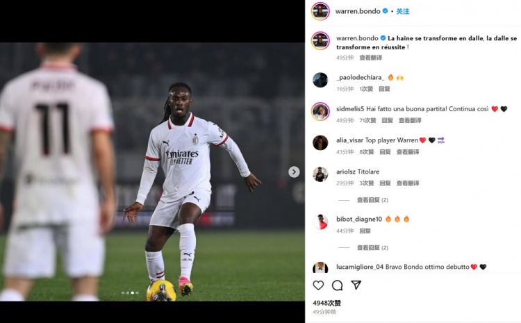 邦多也在賽后通過(guò)社媒曬出自己的比賽照,并引用了一段法語(yǔ)嘻哈歌曲的歌詞配文:“仇恨轉(zhuǎn)化為渴望,渴望轉(zhuǎn)化為成功”。