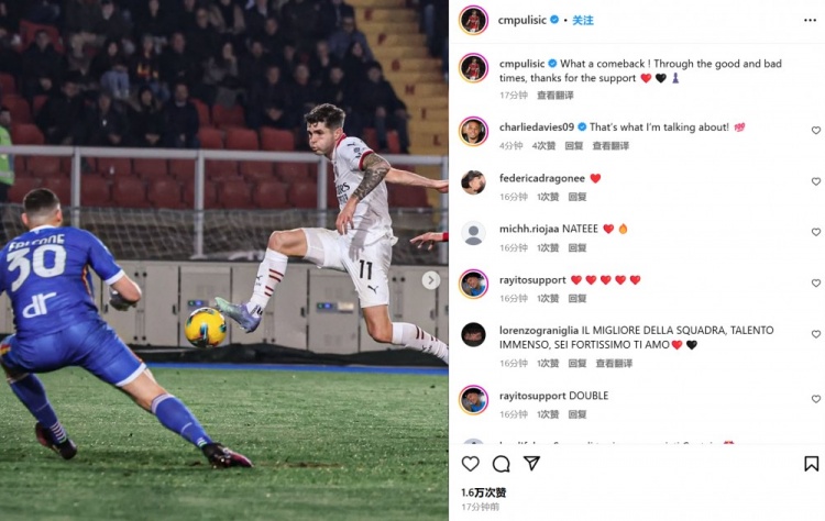 他也在賽后通過社媒曬出自己的進球照,并配文:“多棒的逆轉(zhuǎn)!經(jīng)歷起起伏伏,感謝球迷們的支持!”