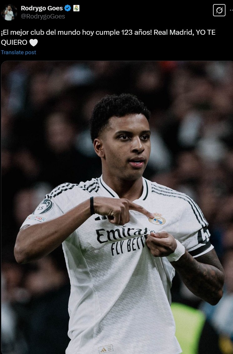 歐冠1/8決賽首回合皇馬2-1戰(zhàn)勝馬競(jìng),羅德里戈再次成為決定性人物。他以自己標(biāo)志性的方式完成這一切,沒(méi)有浮夸的慶祝,沒(méi)有多余的動(dòng)作,完美詮釋個(gè)人風(fēng)格。但最引人注目的是進(jìn)球后的表態(tài):在親吻皇馬隊(duì)徽并用手指向伯納烏草皮做出"留駐"手勢(shì)后,他宣告"我會(huì)留在這里"。