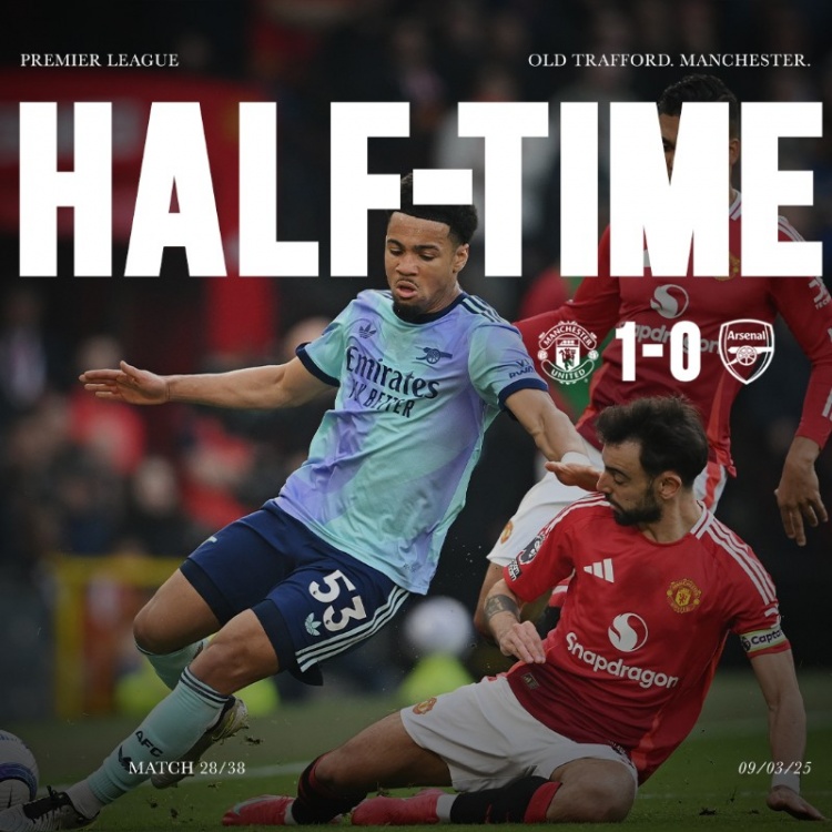 3月10日訊 本輪英超焦點(diǎn)戰(zhàn),曼聯(lián)在主場上半場1-0領(lǐng)先阿森納。