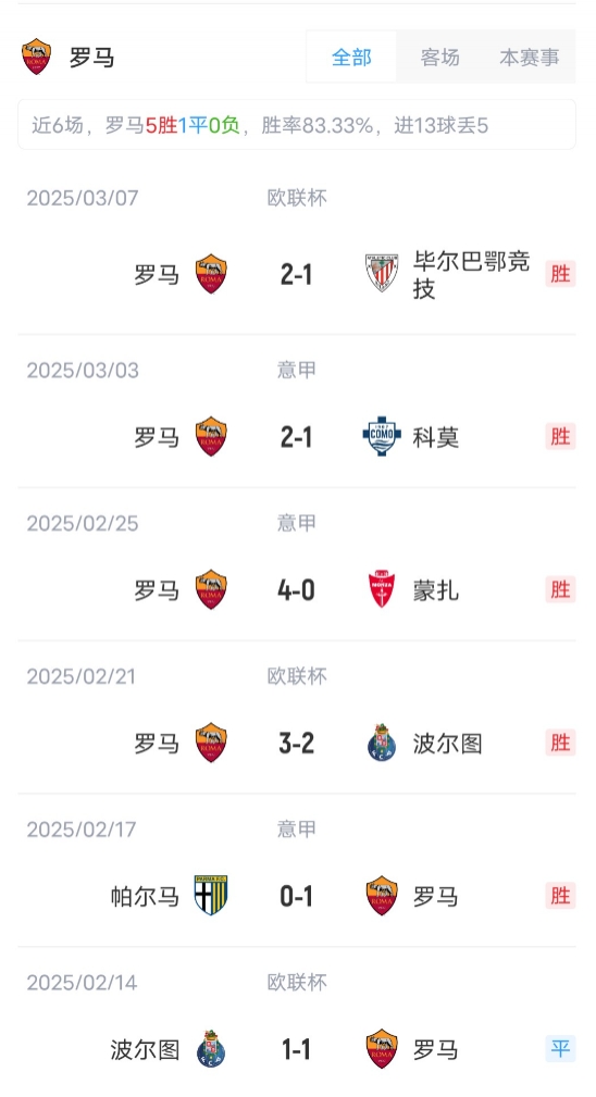 羅馬首發(fā):99-斯維拉爾、25-尼爾森、15-胡梅爾斯、5-恩迪卡、12-阿卜杜勒哈米德、17-科內(nèi)、16-帕雷德斯、34-薩拉赫-埃丁、7-佩萊格里尼、18-蘇萊、14-肖穆羅多夫