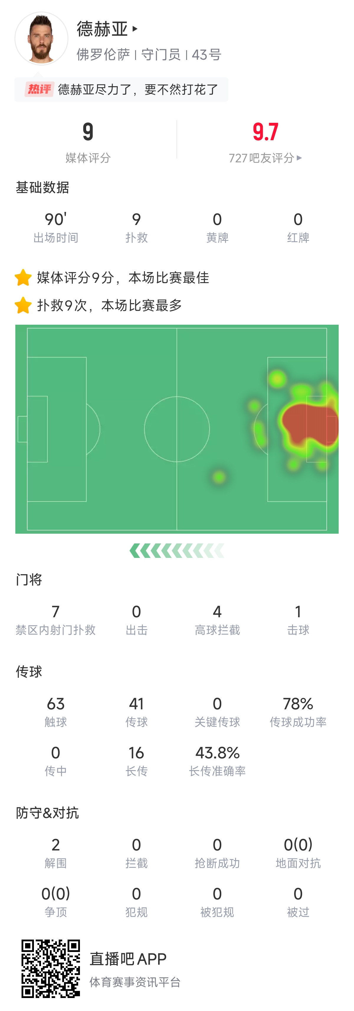 這場比賽那不勒斯一共打門19腳,其中11腳射正。德赫亞的數(shù)據(jù)為丟2球,9撲救,4高空攔截,1擊球,2解圍,觸球多達63次。