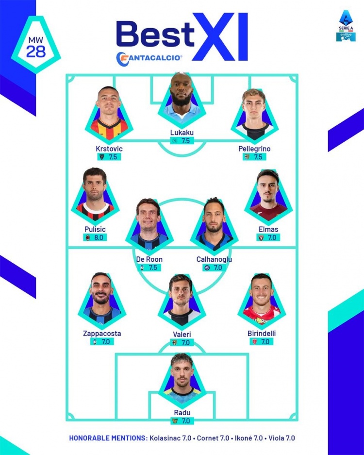 3月12日訊 意甲第28聯(lián)賽已經(jīng)完賽,意甲官方也評出了本輪最佳陣容,普利西奇和恰爾汗奧盧領(lǐng)銜。