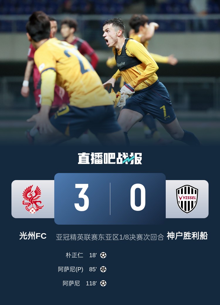 3月13日訊 亞冠精英聯(lián)賽1/8決賽次回合,光州FC在首回合客場兩球落敗的情況下,主場完成逆轉(zhuǎn),以3-0的比分擊敗神戶勝利船,晉級下一階段。