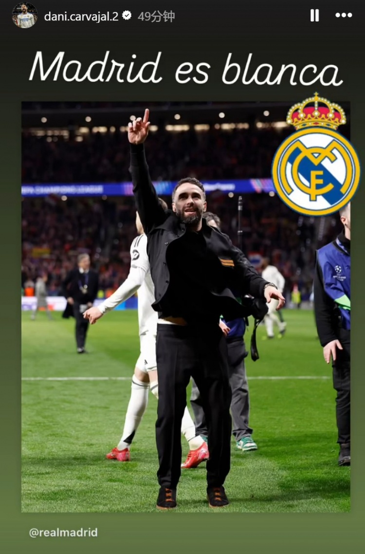 賽后目前還在養(yǎng)傷階段的卡瓦哈爾也進(jìn)入球場(chǎng)與隊(duì)友一同慶祝勝利,他在社媒曬出照片并配文寫道:“馬德里是白色的!”