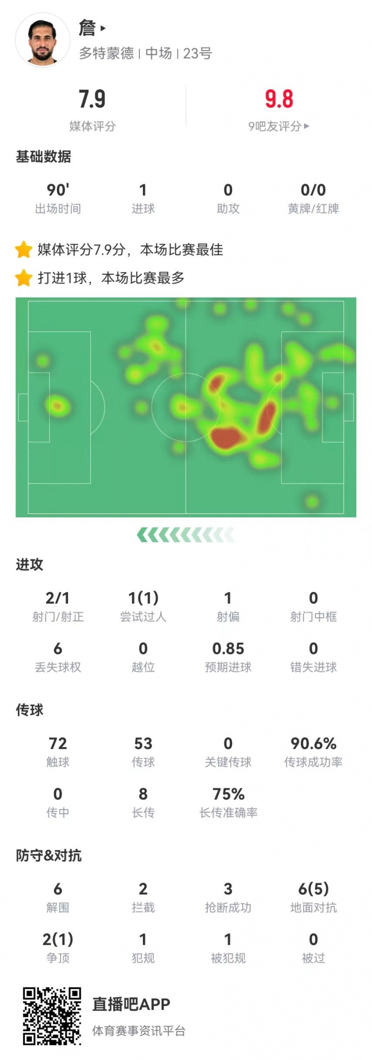 3月13日訊 多特在本輪歐冠2-1擊敗里爾,埃姆雷-詹在賽后被歐冠官方評為本場最佳球員。