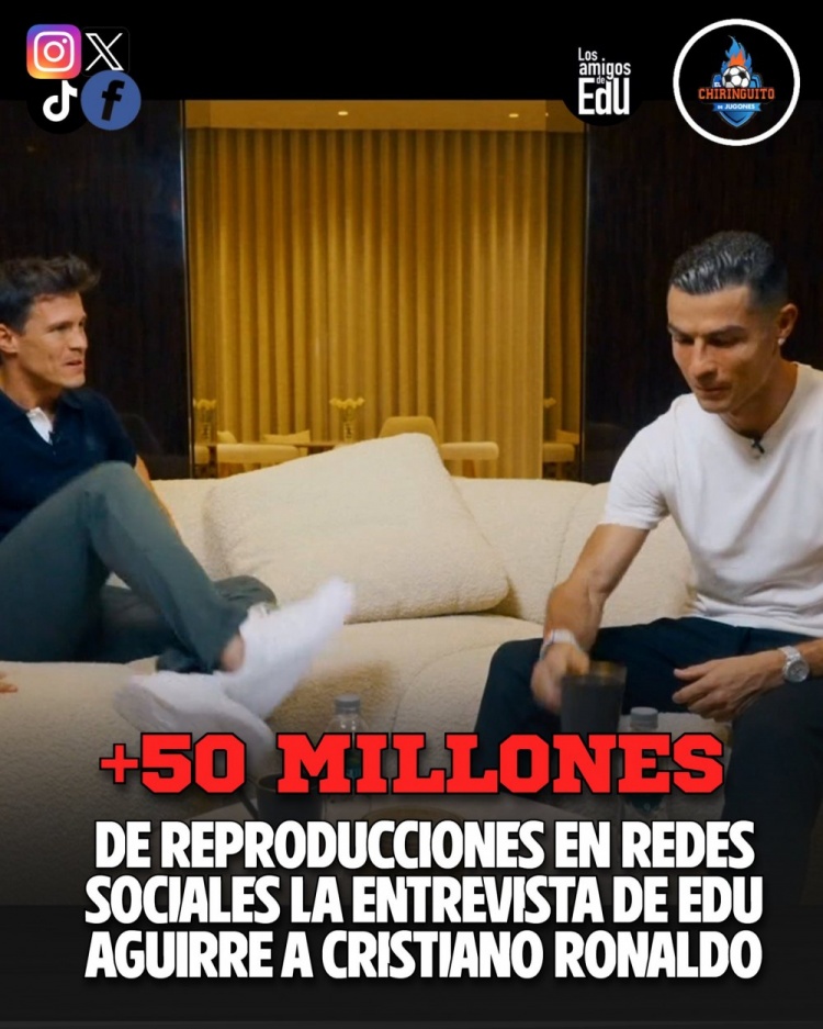 C羅接受西班牙六臺記者愛德華多-阿吉雷的專訪,西班牙六臺指出,這次專訪的視頻在各個社交平臺的點擊量已經(jīng)突破5000萬。