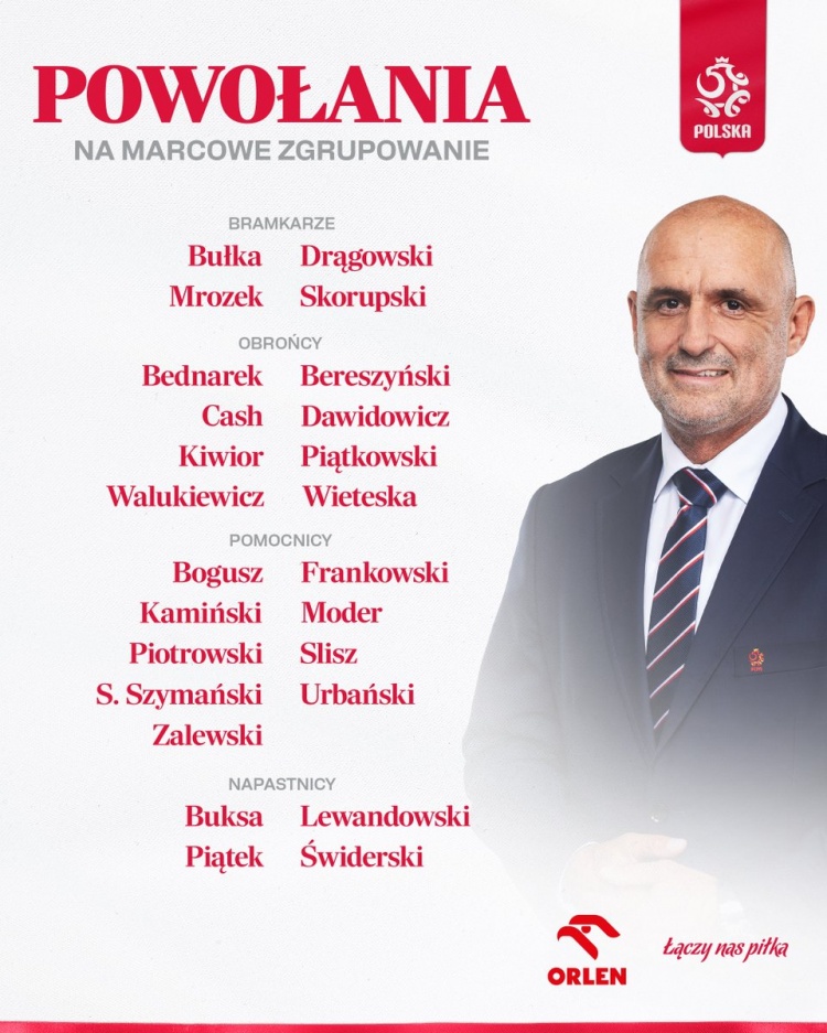 3月14日訊 波蘭最新一期國(guó)家隊(duì)名單公布,萊萬(wàn)多夫斯基領(lǐng)銜,扎萊夫斯基、基維奧爾、皮亞特克在列。