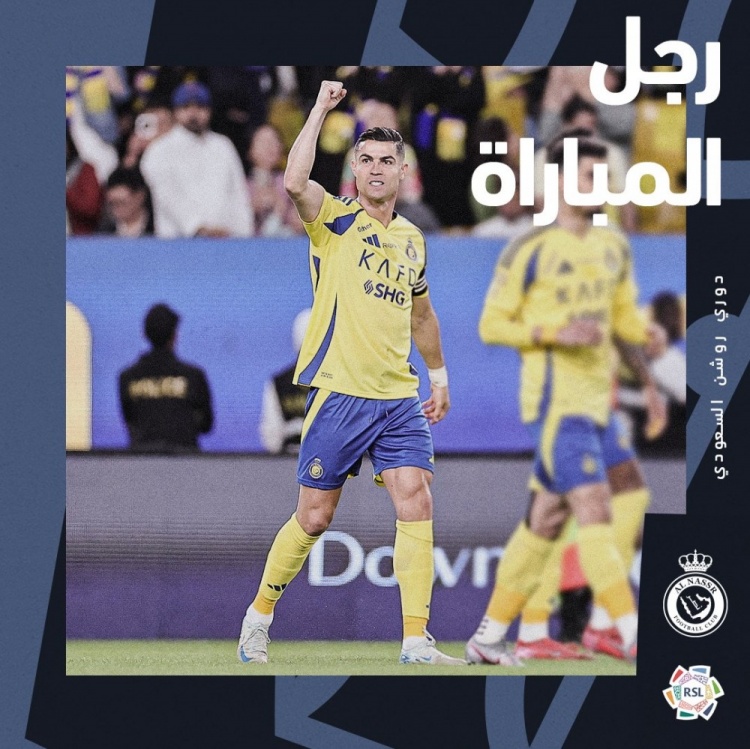沙特聯(lián)賽官方也在賽后宣布:“經(jīng)過球迷投票,C羅當(dāng)選為本場聯(lián)賽的全場最佳球員?!?/p>