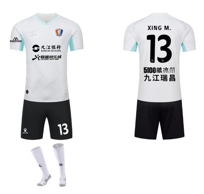 第二客場戰(zhàn)袍以皓月白為主色調(diào),搭配淺藍(lán)色細(xì)節(jié)及黑色比賽短褲,簡潔大氣,沉穩(wěn)中透露著鋒芒。球衣設(shè)計(jì)靈感來源于江西廬山著名的云霧景觀,寓意著球隊(duì)在客場比賽中披荊斬棘,乘風(fēng)破浪。