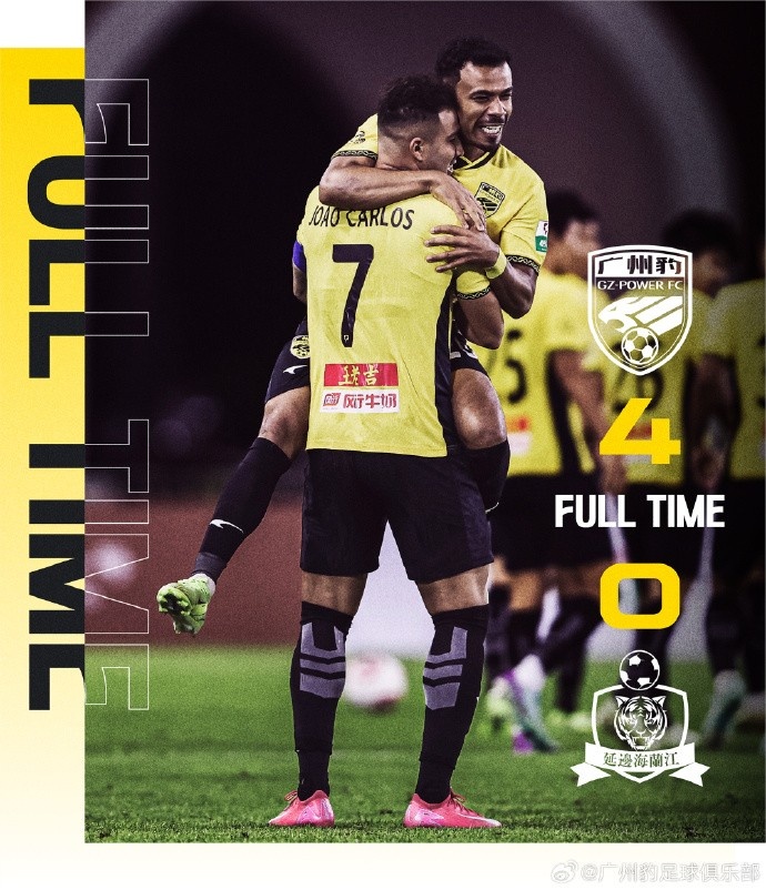 廣州豹在下半場的第一次進(jìn)攻就鎖定勝局,第46分鐘,巴西外援羅薩在反擊中突施冷箭,對方門將董佳林面對這腳遠(yuǎn)射措手不及,最終導(dǎo)致脫手,目送皮球滾入球網(wǎng)。第87分鐘,巴西外援卡洛斯完成梅開二度將比分鎖定為4-0。